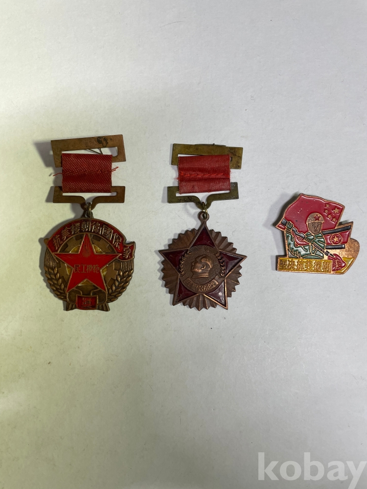 북한군 중공군 관련 훈장 및 뱃지 총3개