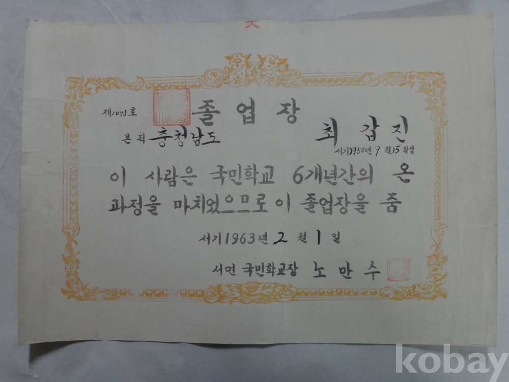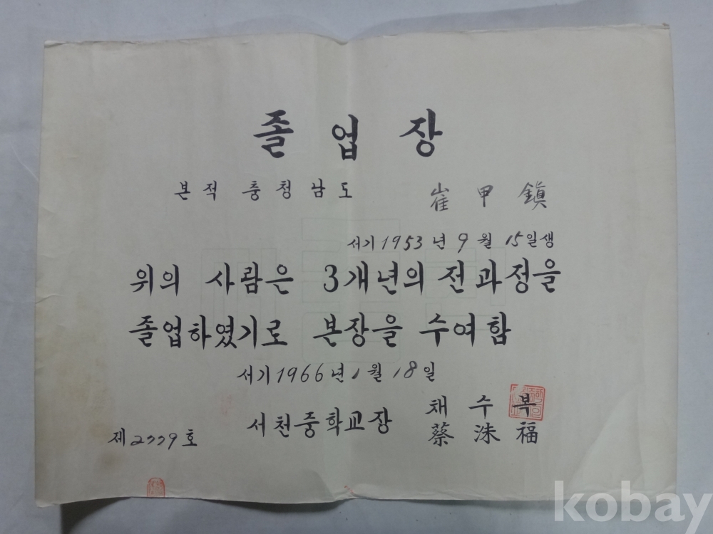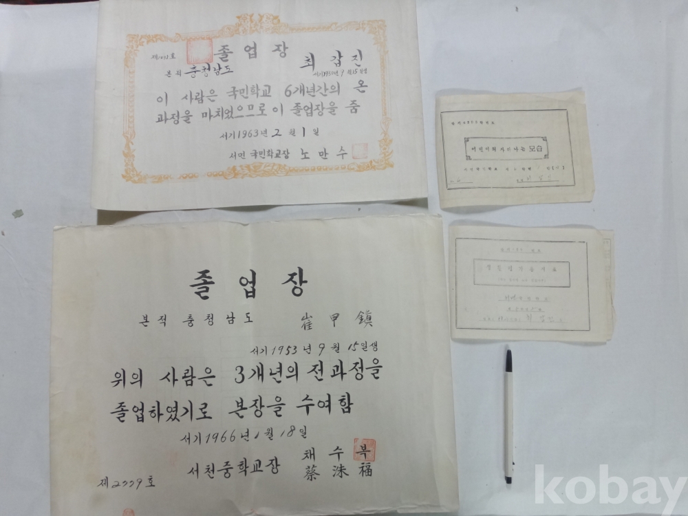 서면국민학교, 서천중학교 - 졸업장, 수업장(어린이의 자라나는 모습), 생활통지표 - 4매일괄 (1960년~)