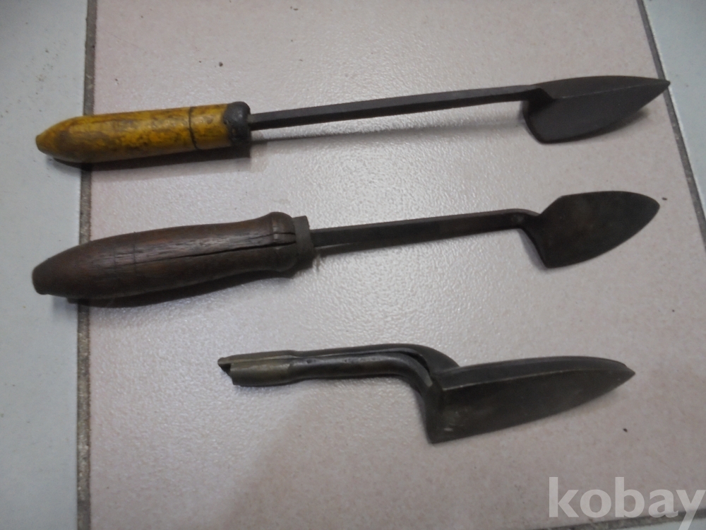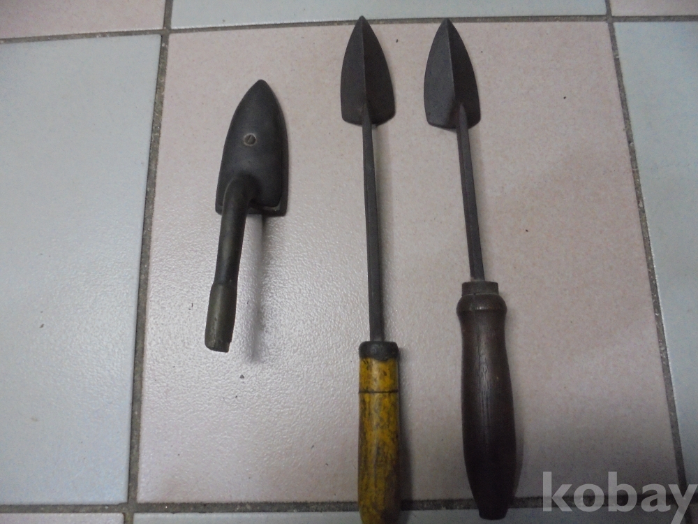 자루가없는 특이한 큰인두는 위에 1자나사있어 어디에사용했는 알수없는 순유기 큰인두이며 나머지 인두는 제치자루에 상태좋은 일반무쇠 인두2점