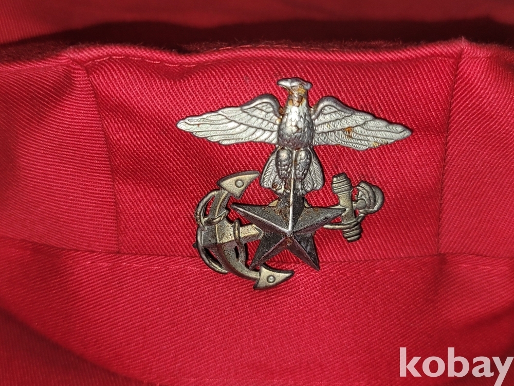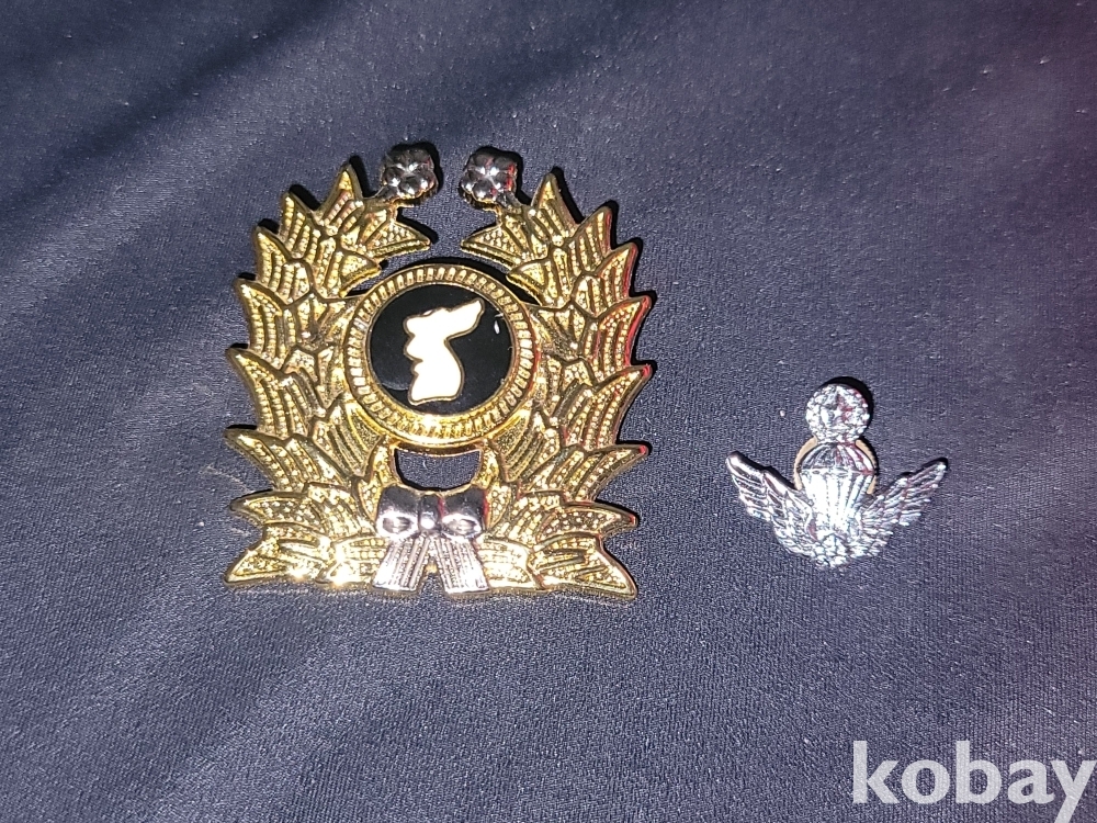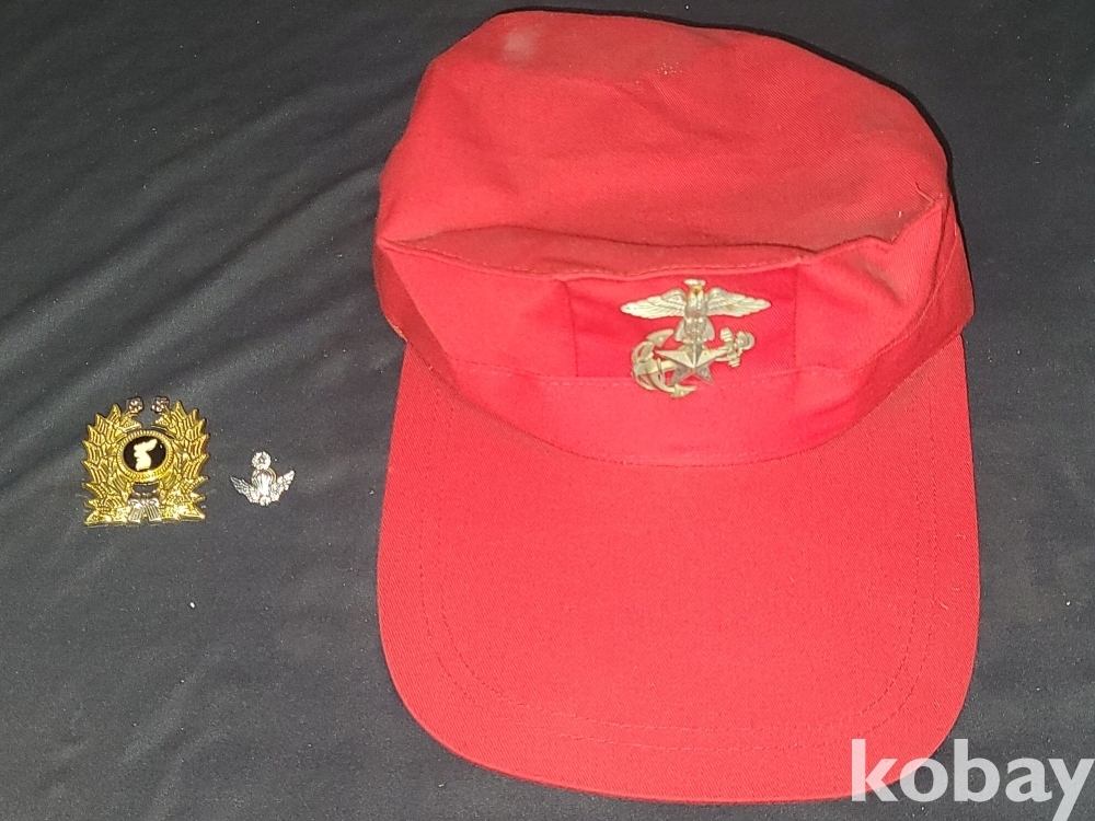 해병대 뱃지가 달린 빨간 해병대 팔각모와 예비군, 공수 뱃지 등 일괄입니다.