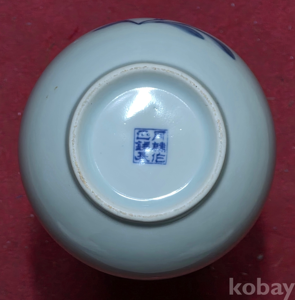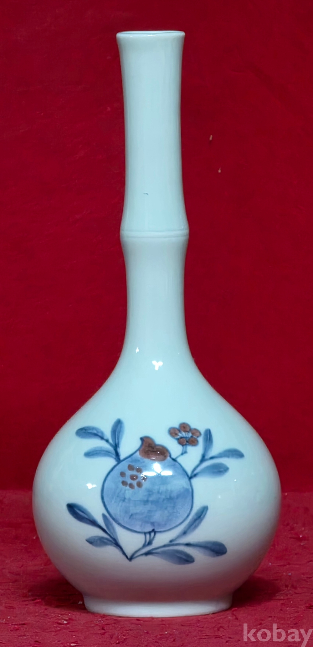 유명 도애가이신 월정 한석기 명장님의 청화백자 복숭아 화병 입니다
