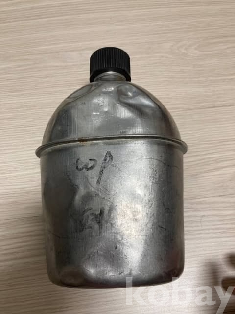 미국에서 1944년 생산되어서 2차세계대전부터 한국전쟁, 월남전까지 쓰인 수통입니다. 전면부에 흐릿한 낙서, 뚜껑은 그 당시 제품이 아님을 알려드리오나 전시 효과는 죽여줍니다.