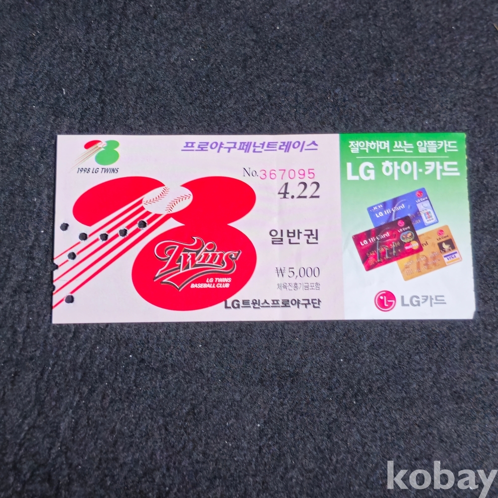 (((프로야구자료/입장권))) 1998년 LG 트윈스 프로야구 페넌트레이스 일반권 (4.22) 입장권