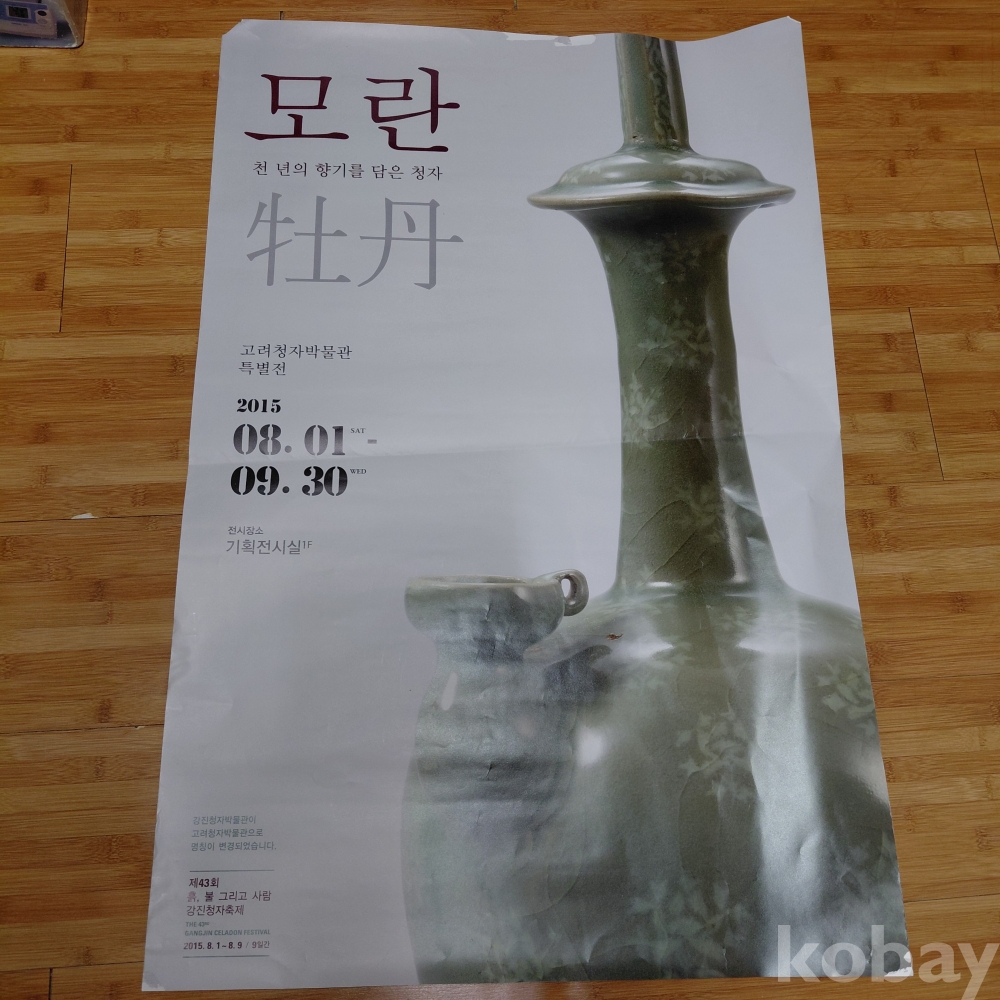 모란 천년의 향기를 담은청자 고려청자 박물관 특별기획전 홍보 대형포스터 (테이프자국등 약간훼손 부분있음)올려드립니다