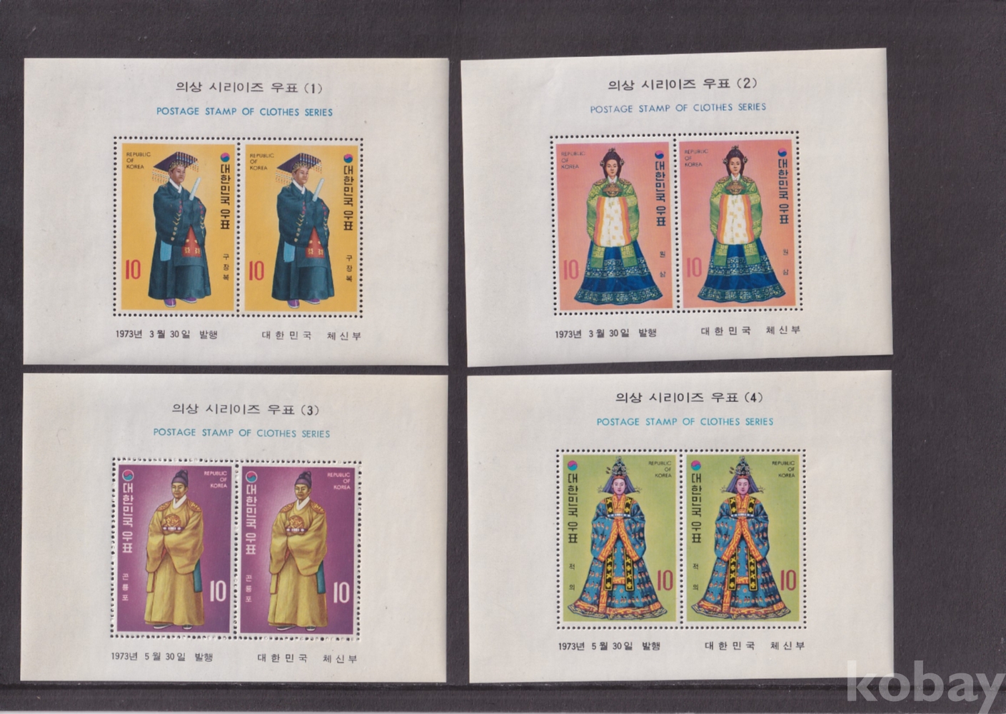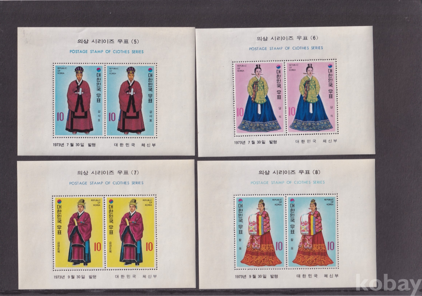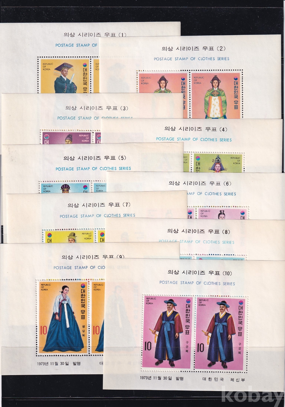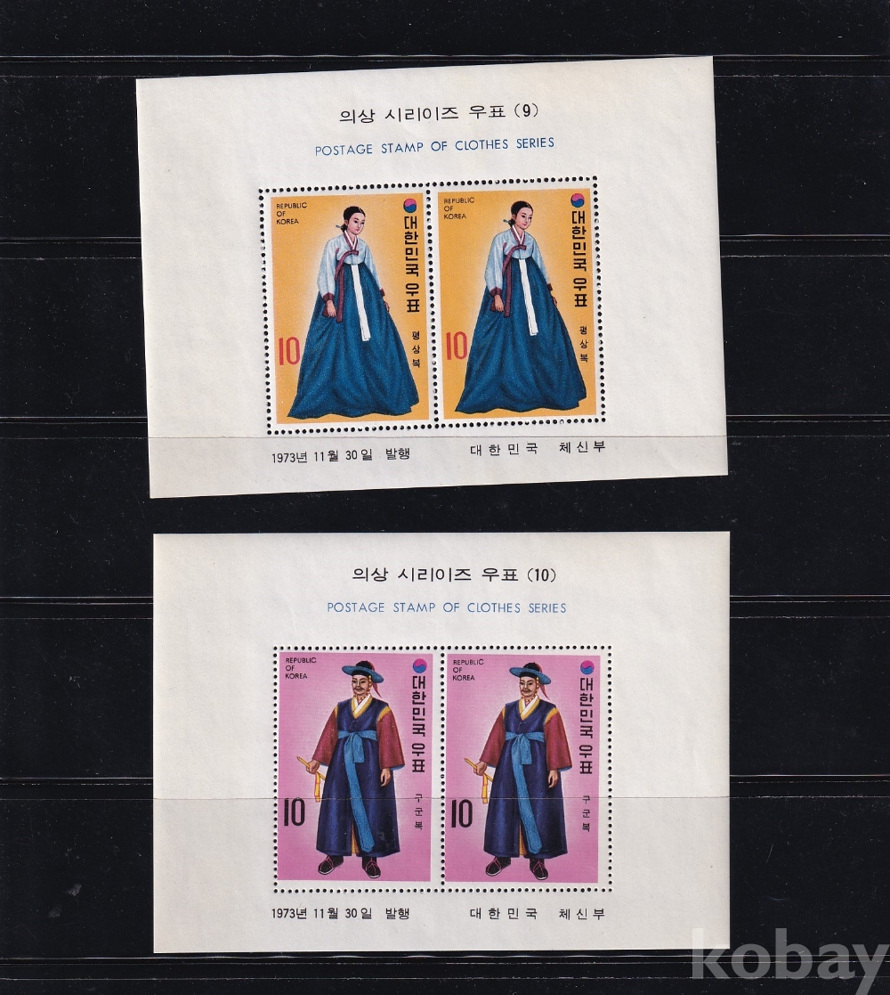 - 미사용 1973년 의상 시리즈(시리이즈) 우표 시트 10종 완집 세트