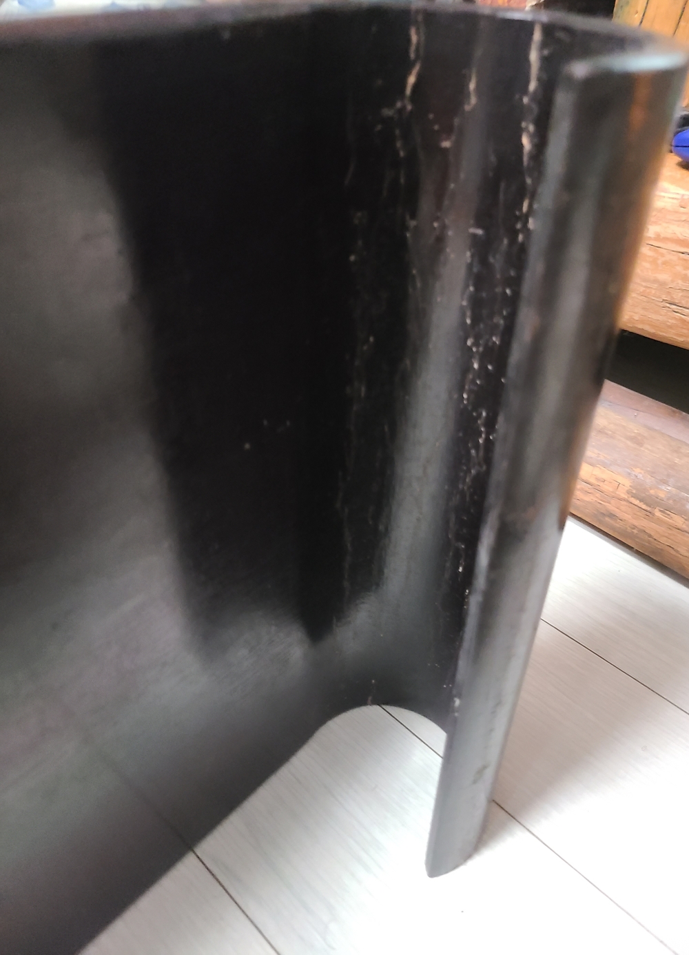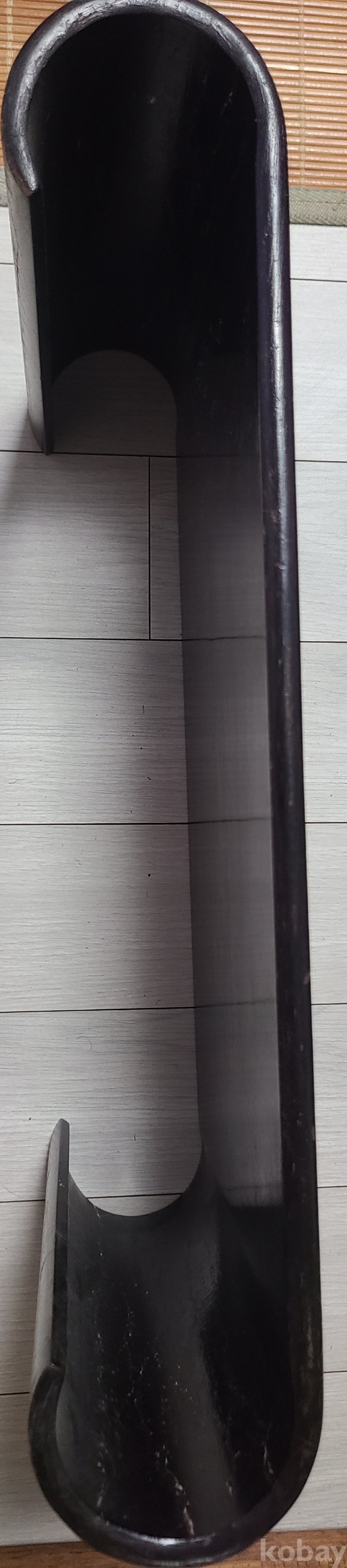 견고한 나무 재질에 흑단풍 마감이 되어 있어 무게감과 고급스러움이 살아 있으며, 부드러운 곡선과 유려한 U자 형태로 전통 다도 도구의 받침대나 장식 용도로 적합합니다.