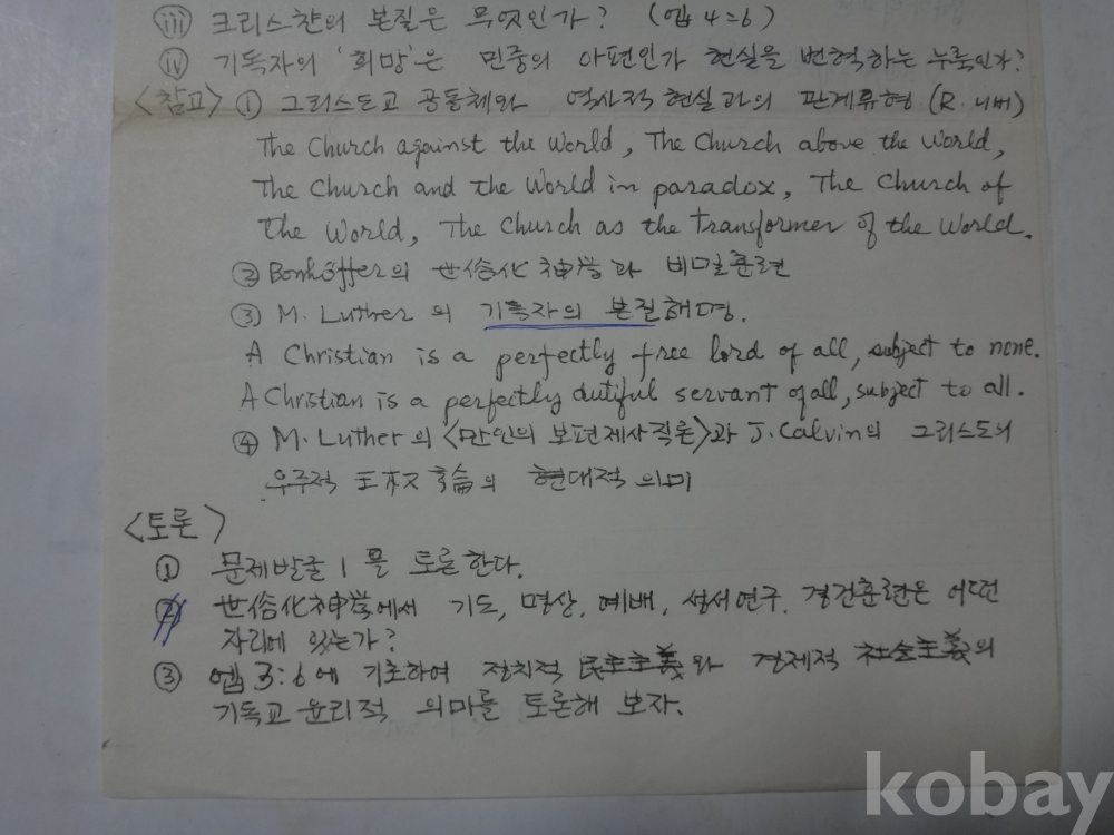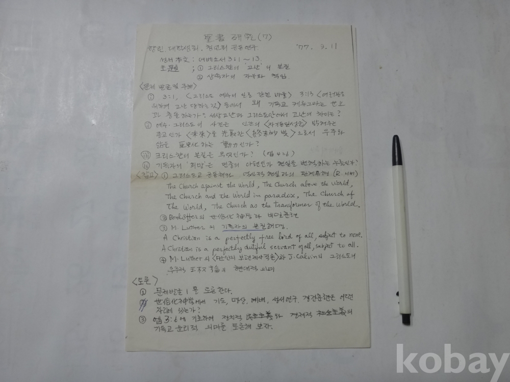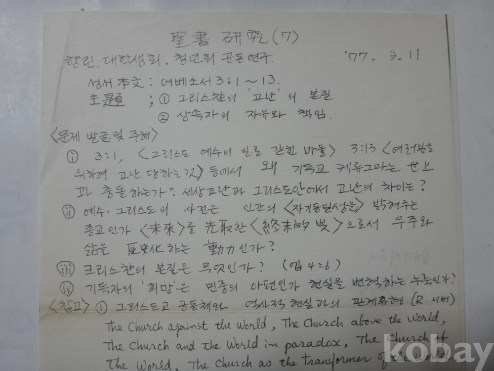 성서 연구 - 향린 대학생회, 청년회 공동연구 (1977년)