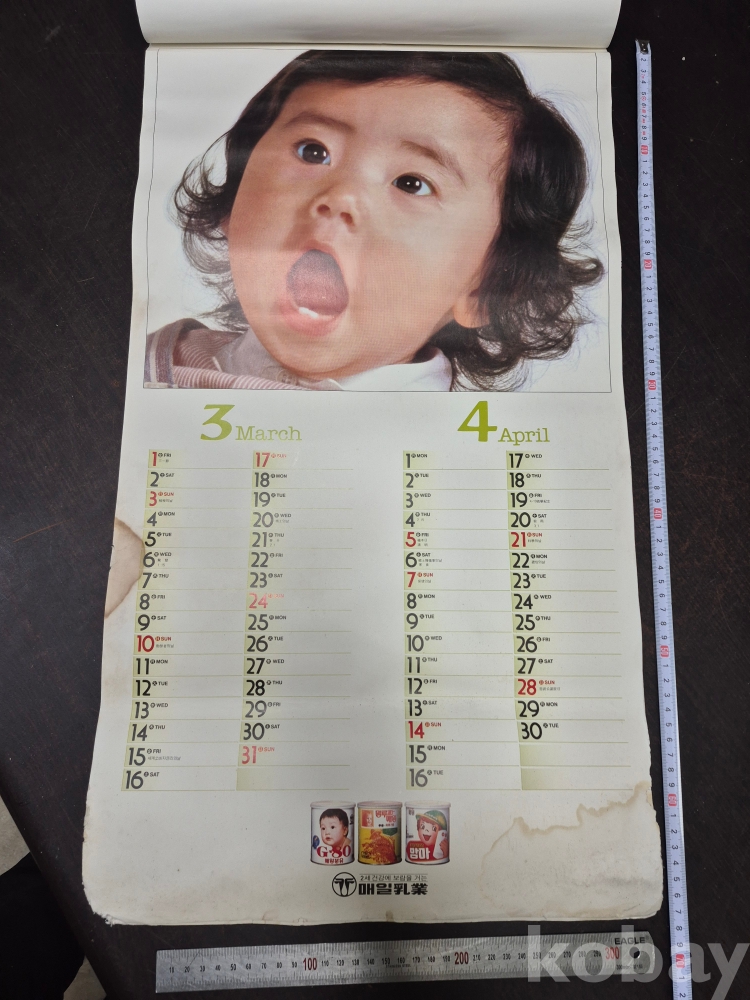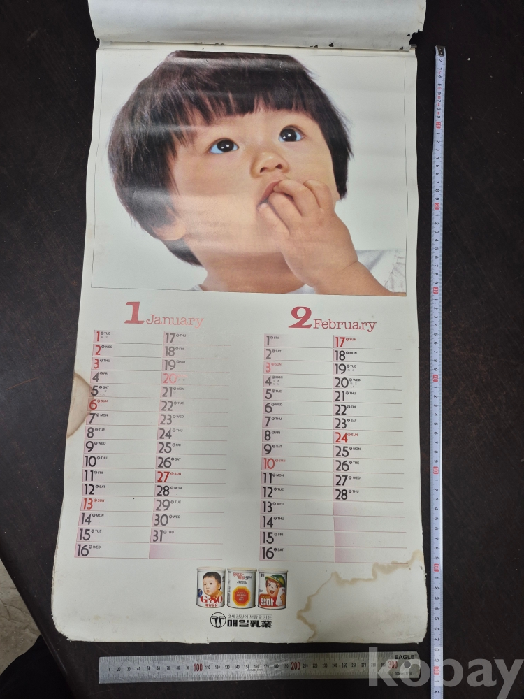 1985년 매일유업 달력 칼렌더 밑부분 오래되어 틎어짐 있어요 38*68