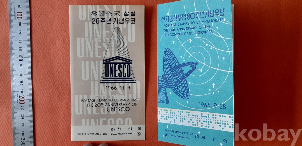유네스코 창설 20주년, 전기통신사업 80주년 안내카드 2종 입니다.