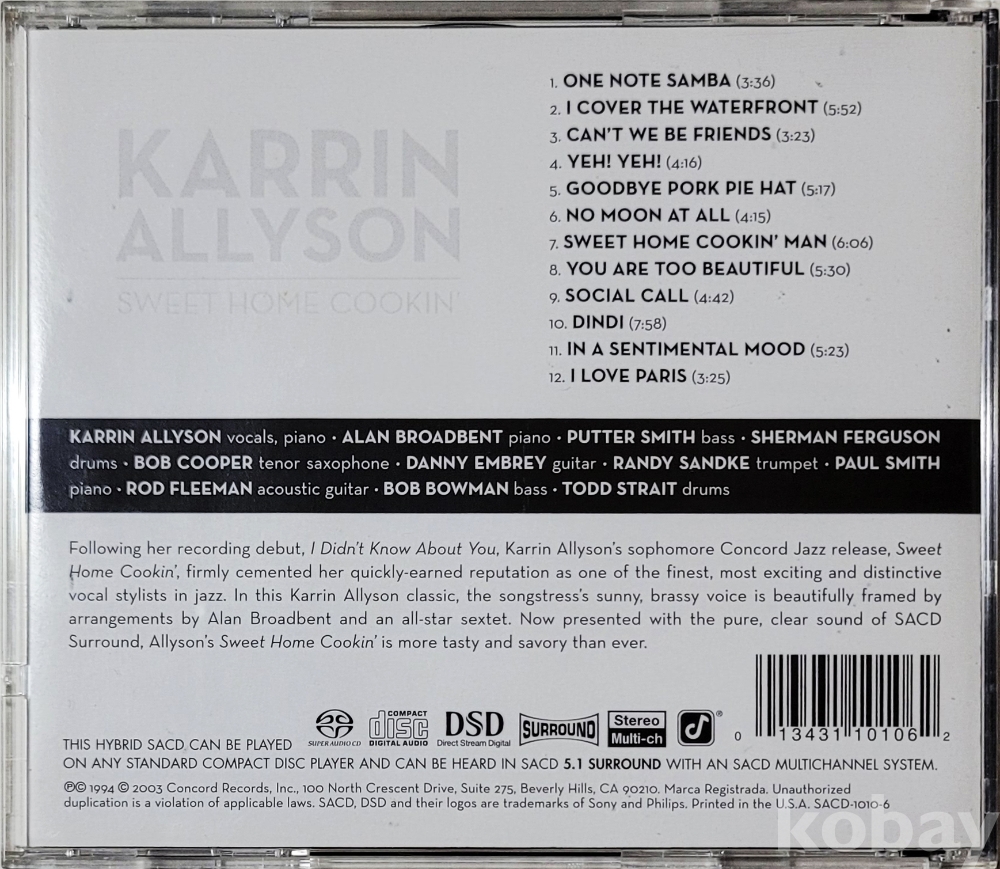 물 품 명 | [POP] 미국반 / 캐린 앨리스(째즈) 2nd 정규앨범 : SWEET HOME COOKIN' / 1994년 / 콘코드재즈레코드 |