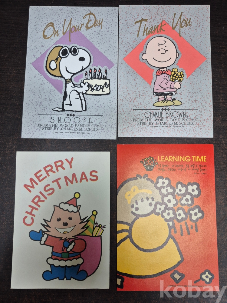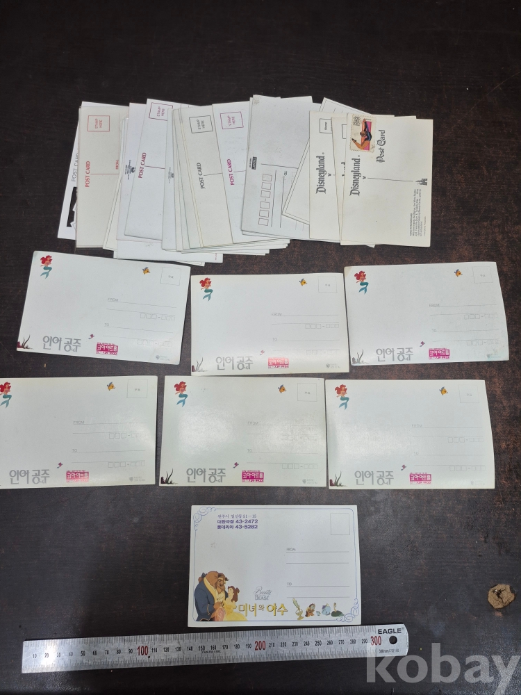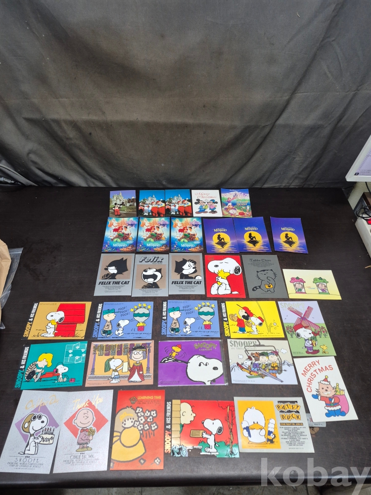 1980년대 원주시 대한극장 미녀와 야수 인어공주 월드디즈니 미키마우스 스누피등 미사용엽서 32장일괄 15*10
