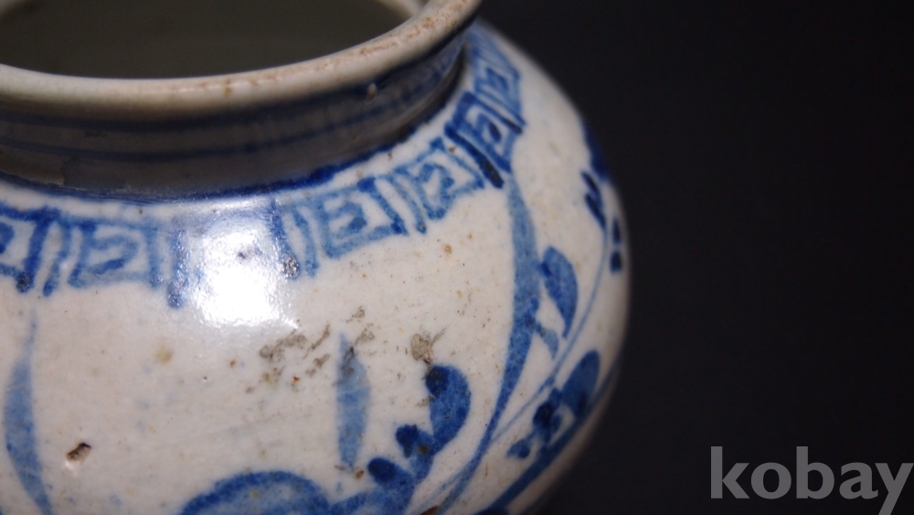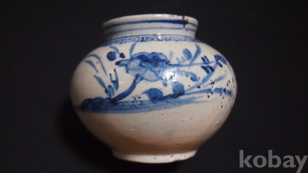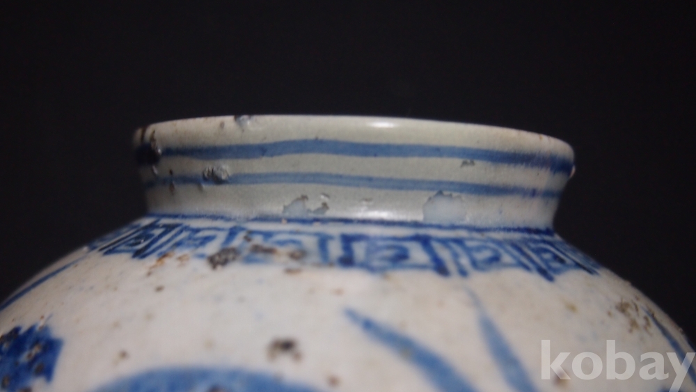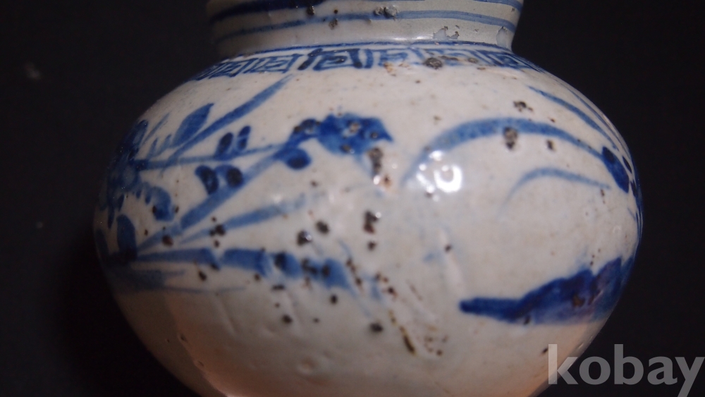 조선의 아름다운 美/자태가 아름다운 청화백자 초화문 호입니다. 구연부 수리 있습니다.