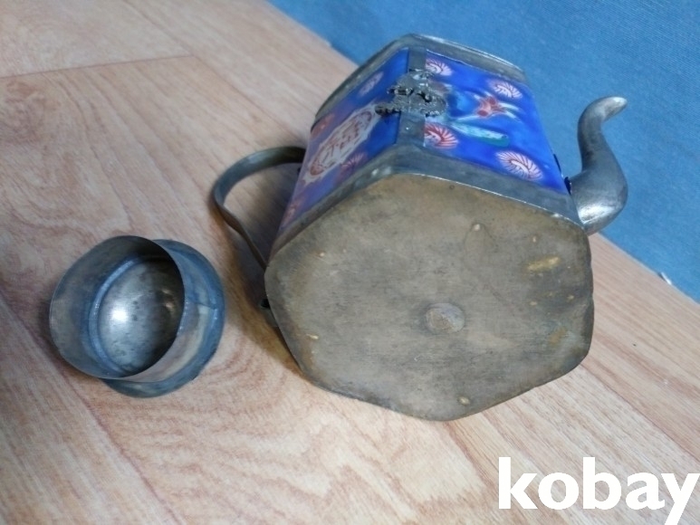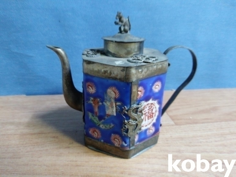 은재질로 멋을 낸 6각 도자기 주전자 입니다.
