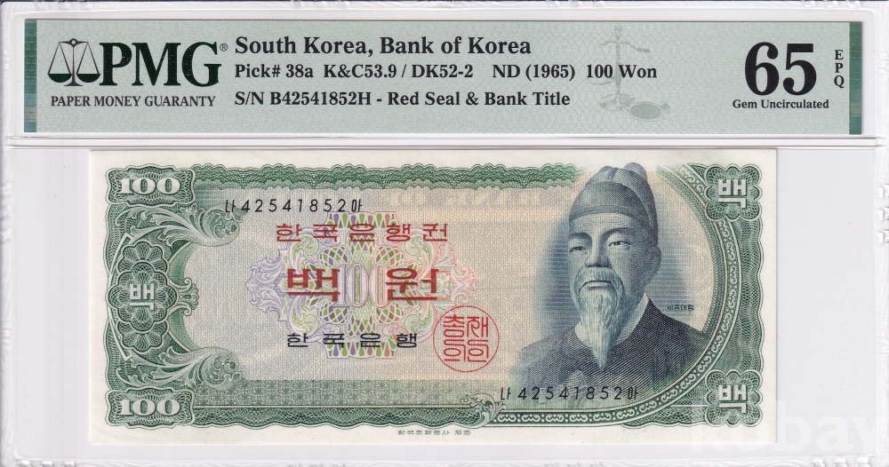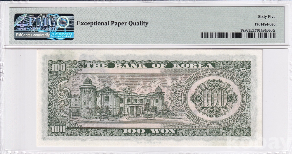 - 1963년 세종 백원 4포인트 PMG 65 EPQ 그레이딩 인증 지폐