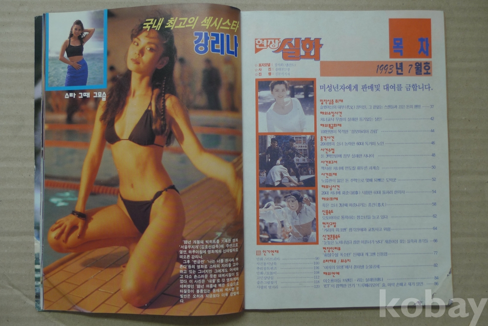 1993년 월간 현장 실화 6월호 잡지 - 표지모델 탤랜트 장서희 -