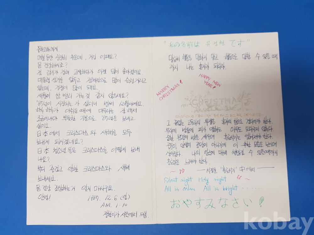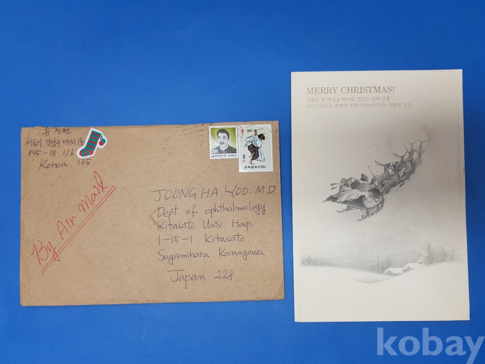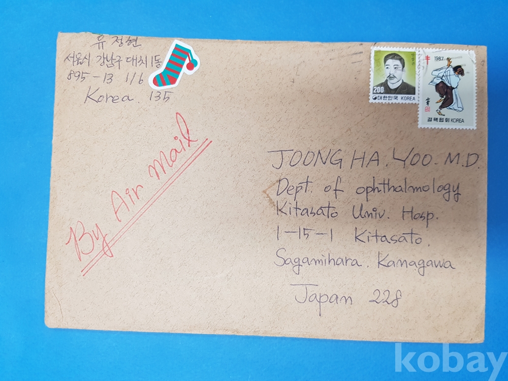 **** 1987년 크리스마스씰 첩부 일본행 실체봉투