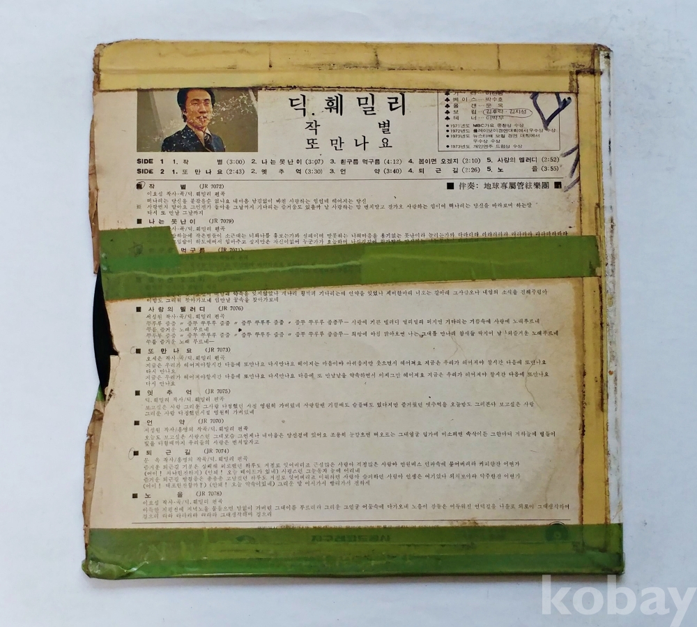 | 자켓상태 | VG : 주름, 접힘, 모서리 찢김 다수 | 음반상태 | EX : 재생에 영향 없는 가벼운 기스 존재 | 발매정보 | 알수없음 | 가사지여부 | 무 |