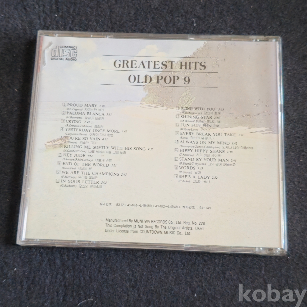 (천원경매)(((국내가요/POP/영화음악/CD))) GREATEST HITS OLD POP 9 (추억의 올드팝송) CD (1994)