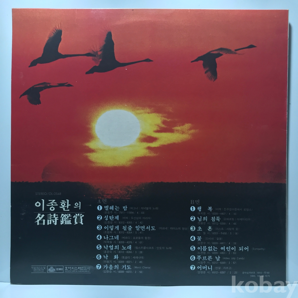 LP 82,350-53 이종환의 명시 감상 - 벌헤는 밤/ 행복 . 자켓 EX+ 알판 EX 83 년제작 국내반