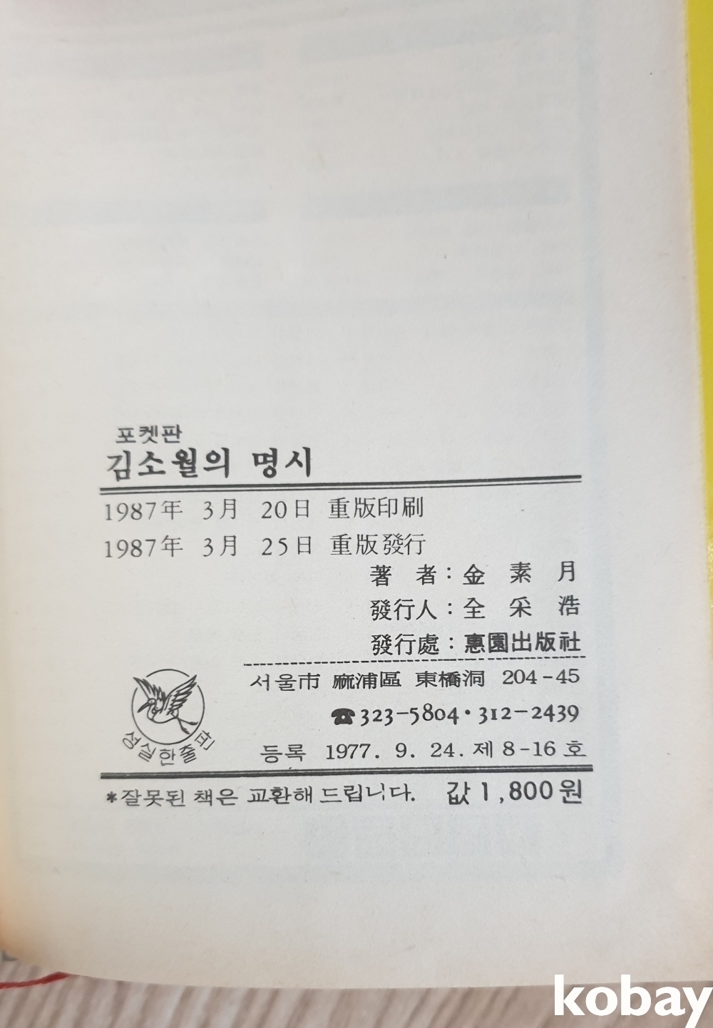 제품특성상 사용감 많이 있고 오래되었습니다. 혜원출판사 1987년 포켓용 양장본 입니다.변색 있습니다.