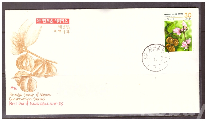(초일봉피) 1980.1.20 자연보호시리즈(제5집)*미선나무 FDC (서울중앙)