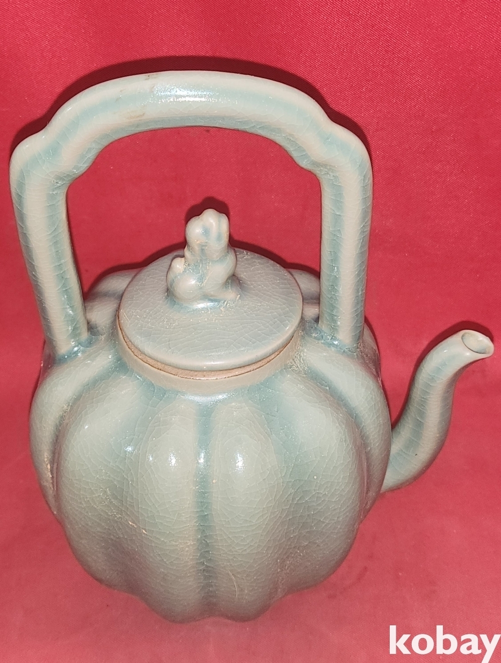 비색청자 ( 翡色 靑磁) 과일형(果形) 골(谷) 문양 주전자입니다,
