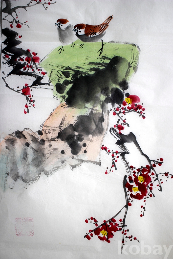香浦(향포)의 작품 (8) - 괴석과 홍매화와 참새