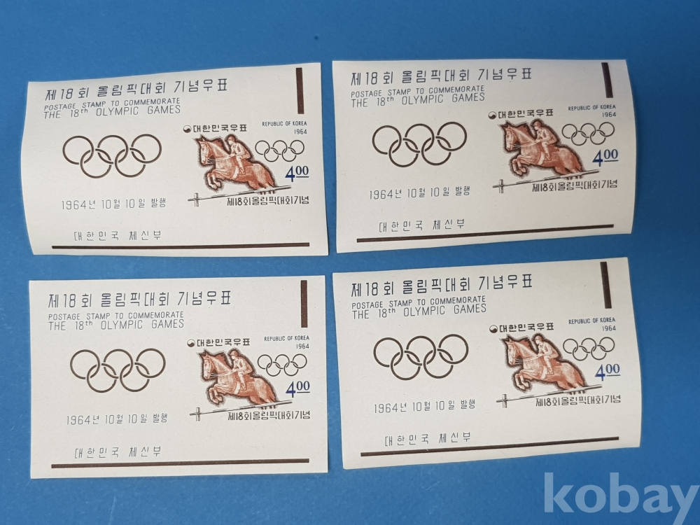 **** 제18회 올림픽대회 기념우표/1964.10.10/대한민국 체신부/4매 일괄