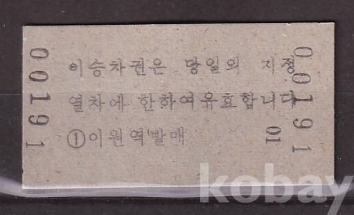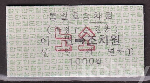 - 미사용 통일호 승차권(특정구간전용) 노소 " 이원 ▶ 조치원 " 1000원