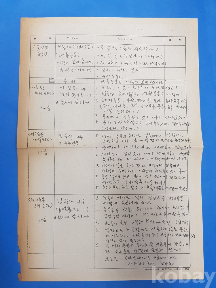 **** TBC-TV 대본 [여성살롱]