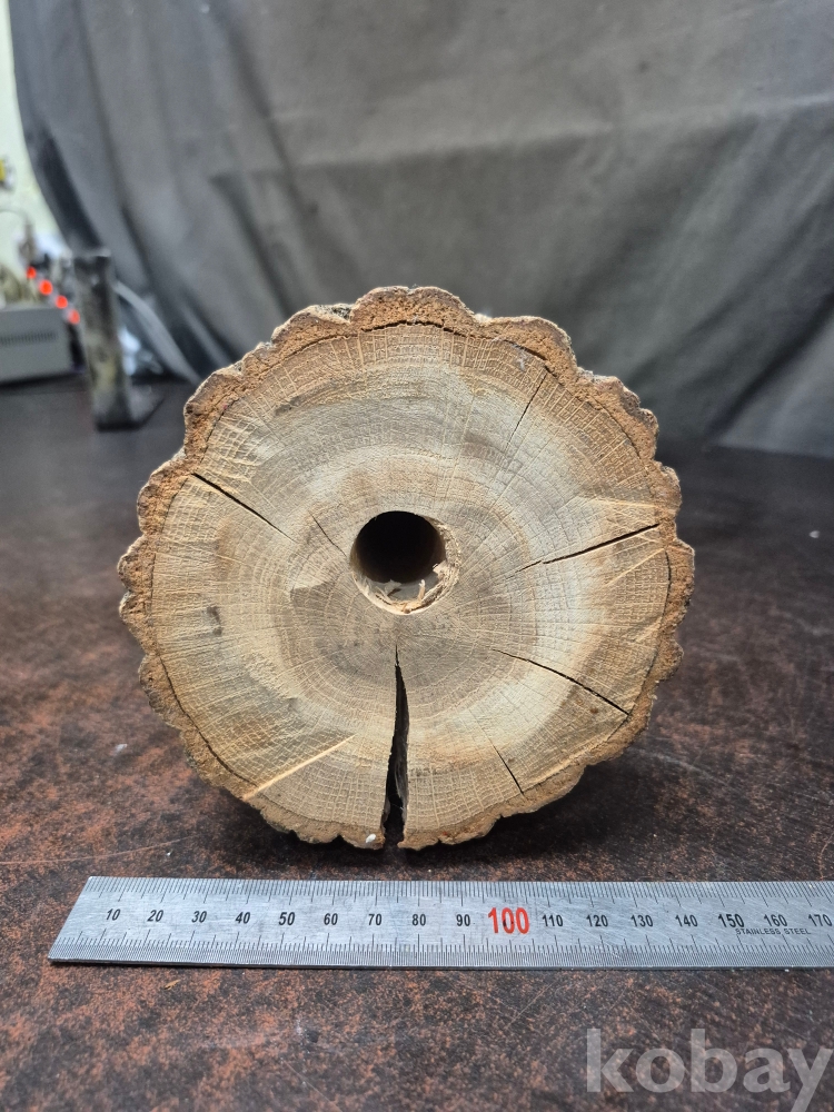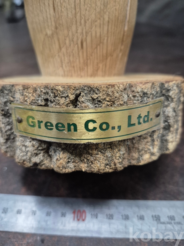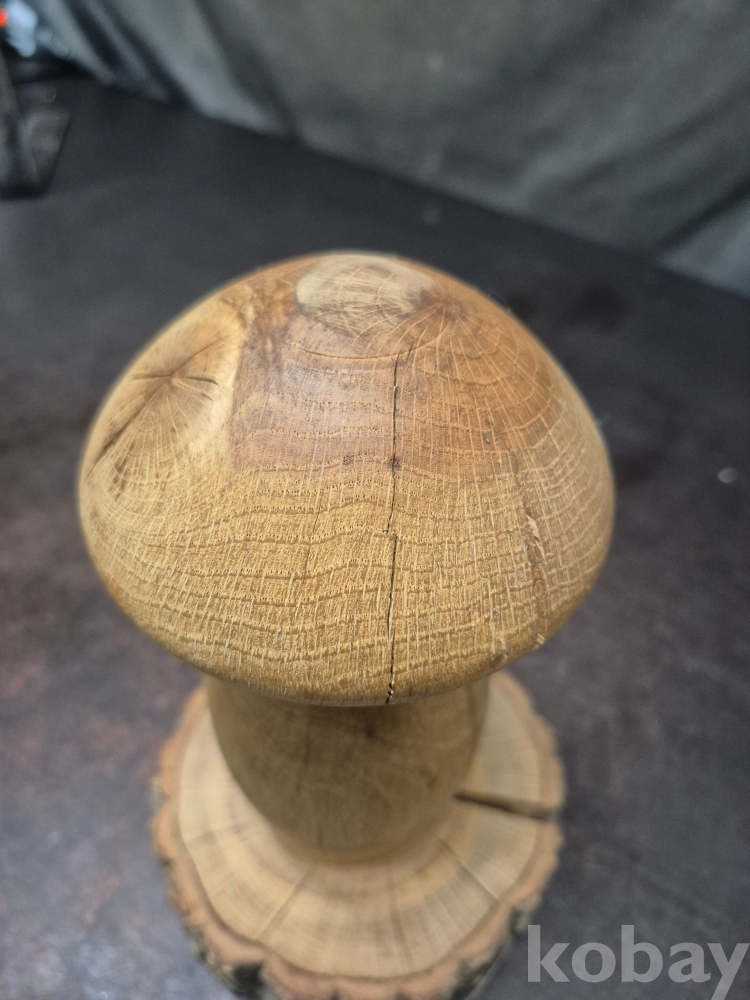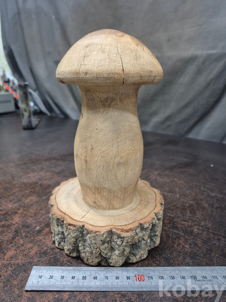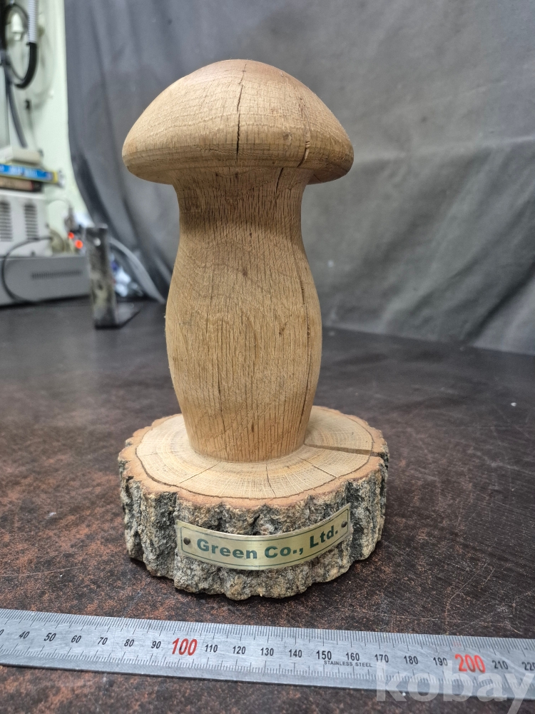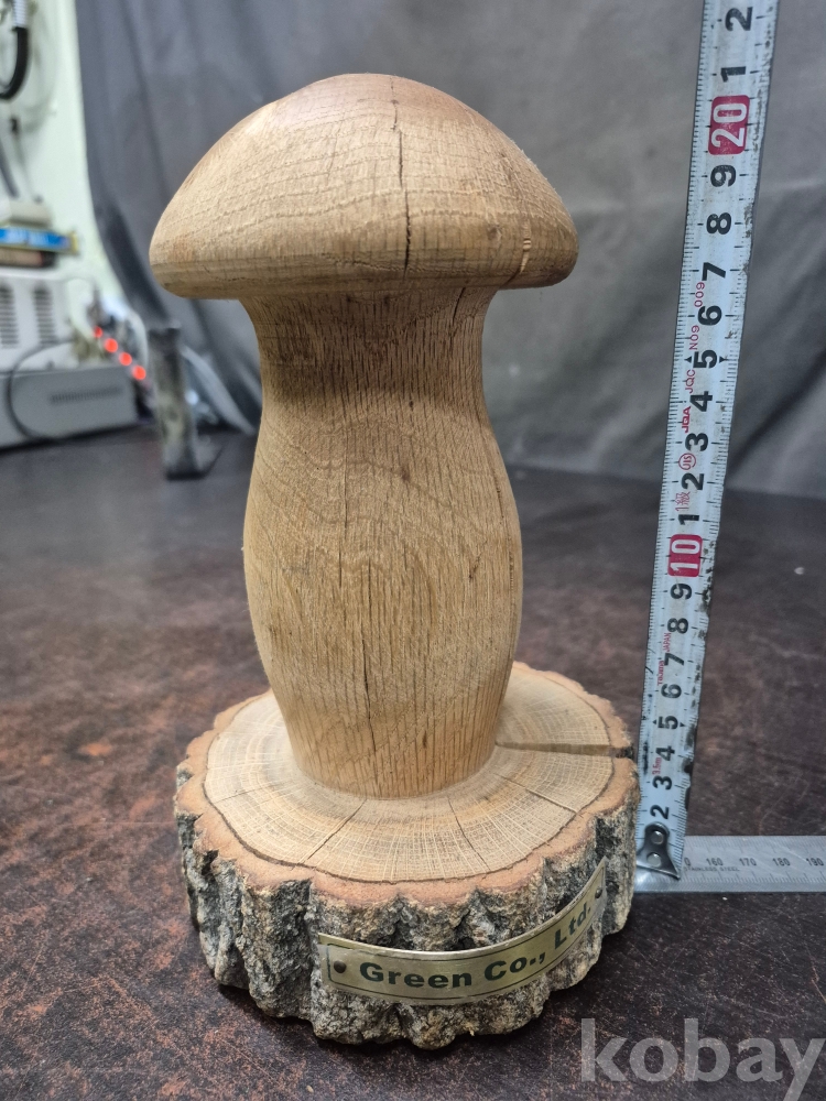 참나무를 통으로 깍아 만든 버섯 모양 남성 성기 모양 소품 green co. ltd 라고 마크 되어 있어요 14*14*22