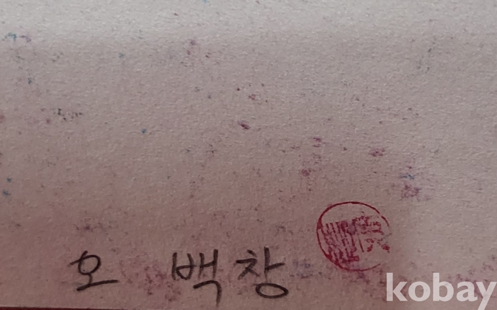 #### 뒷면에는 작가의 도장 사인이 보임니다,