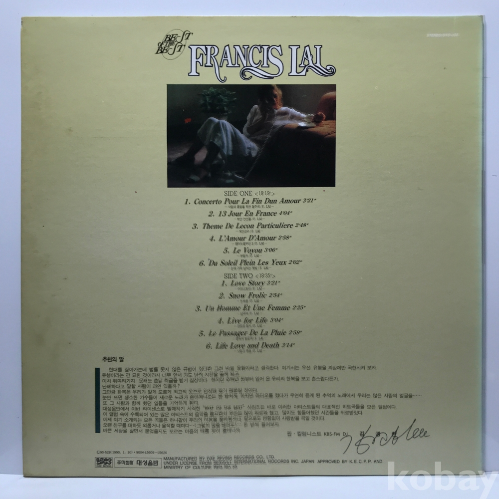 LP 35,850-80 Best of Francis Lai . 91 대성 자켓 EX+ 알판 EX