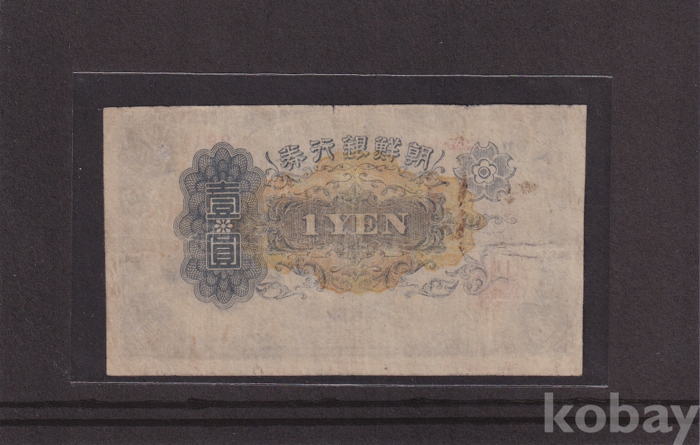 - 조선은행 1944년 개 일원 판번호 291번 무번호권 사용제 지폐