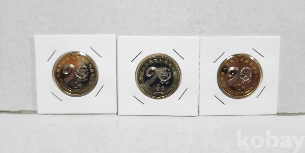-중국 2017년 건국 90주년 바이메탈 기념주화 10위안 미사용 3개 일괄 입니다.