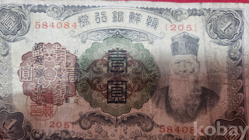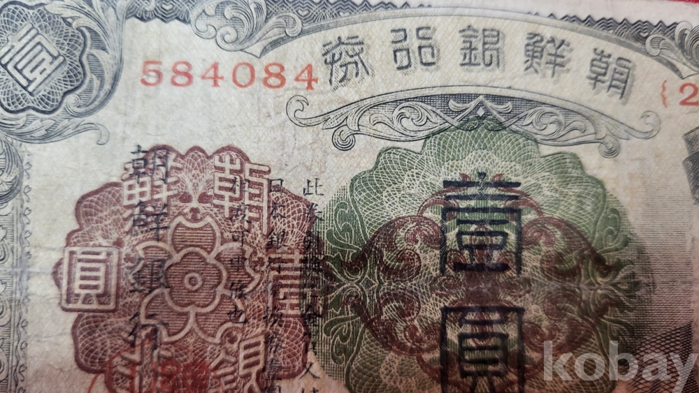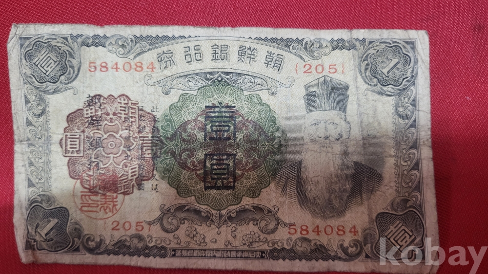 T ㅡ1권 3 호 넷좌번 ////// 일제강점기 때 사용되었던 조선은행의 일원 지폐입니다,