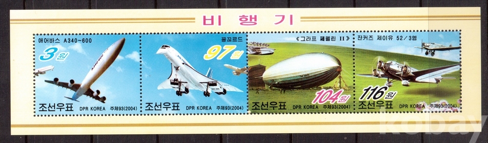 (비행기) 북한 2004.8.20 비행기 booklet pane of 4 MNH