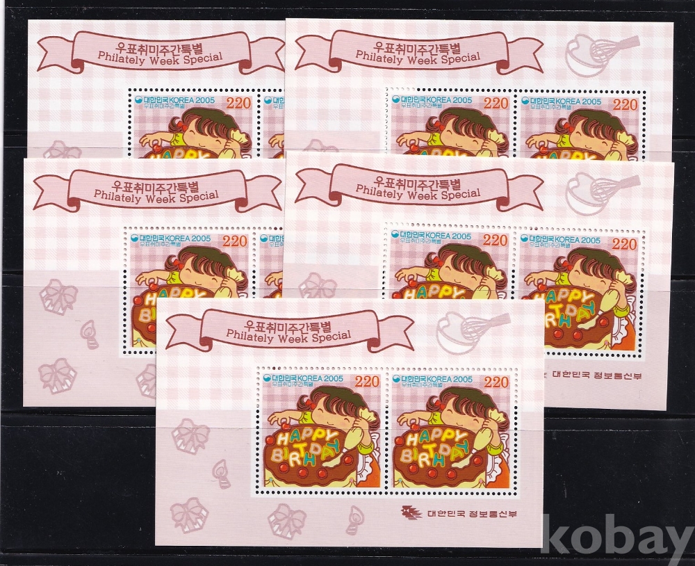 - 미사용 2005년 우표취미주간 220원 시트 5장 일괄