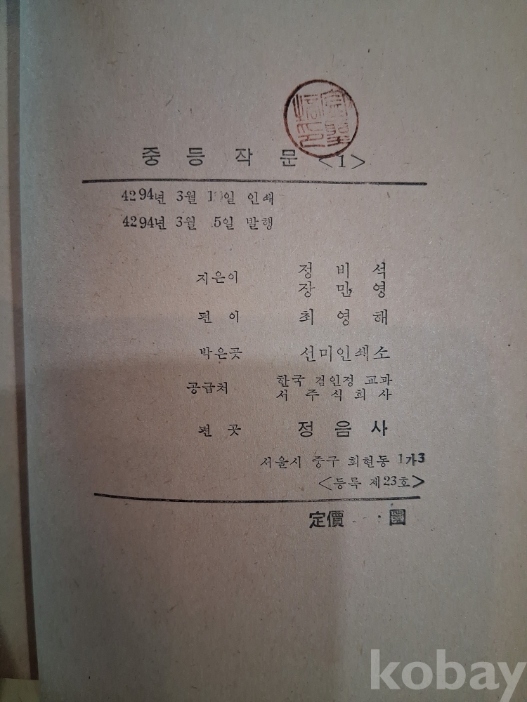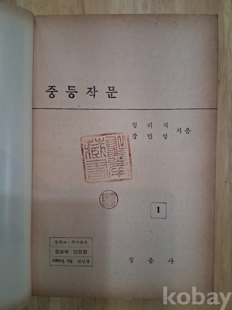 [1961년 교과서] 중등 작문1/정비석, 장만영 엮음/정음사