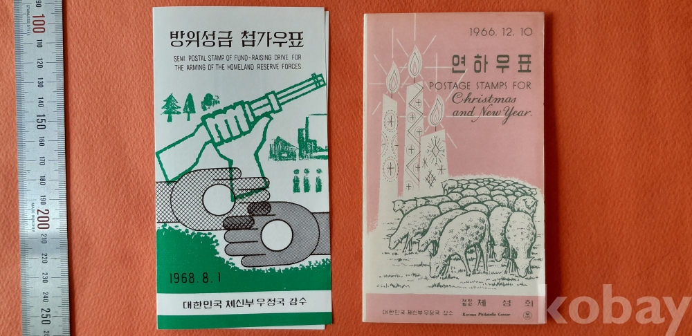 방위성금 첨가, 67년용 연하 우표 안내카드 2종 입니다.