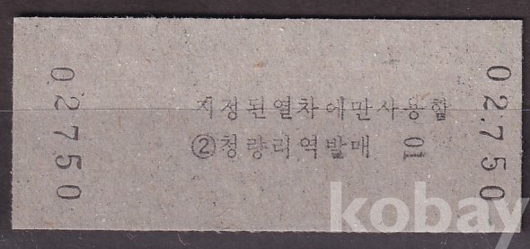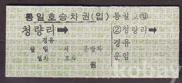 - 미사용 통일호 승차권 " 청량리 발매 "