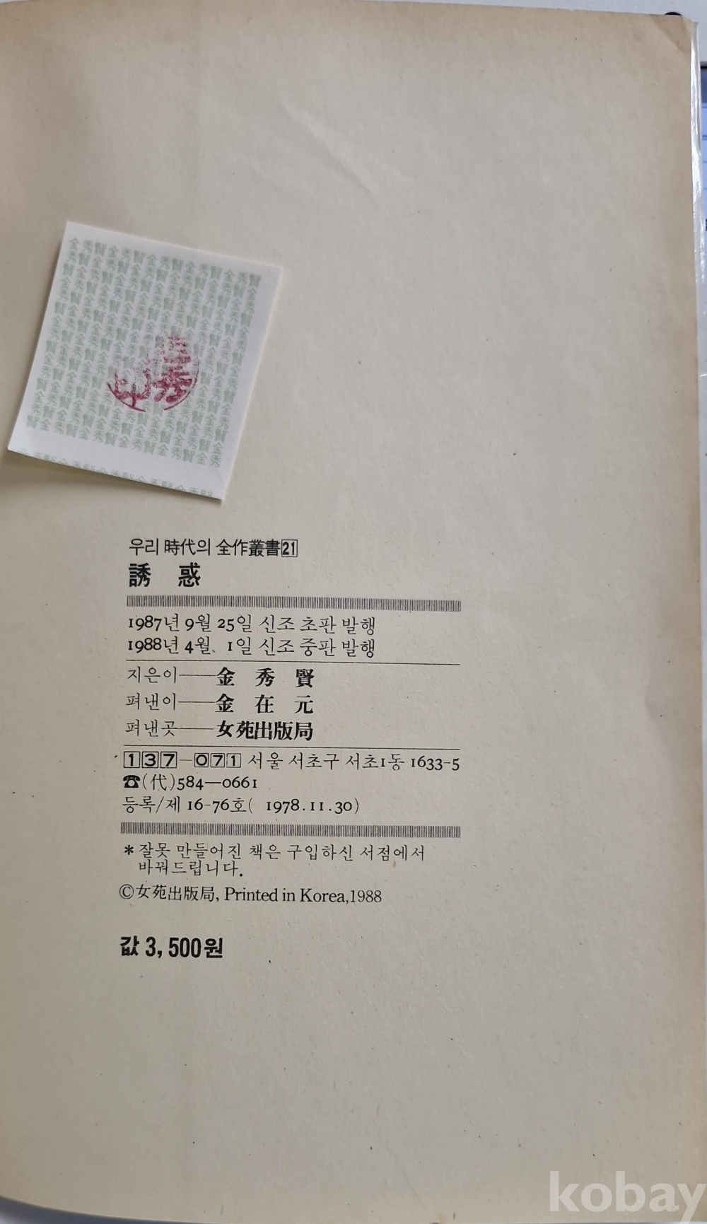 1988년 4월 발행,