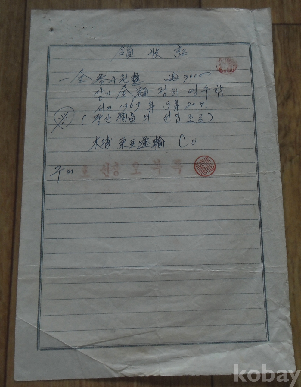 옛 영수증(계산서): 1969년 목포동아운수 영수증