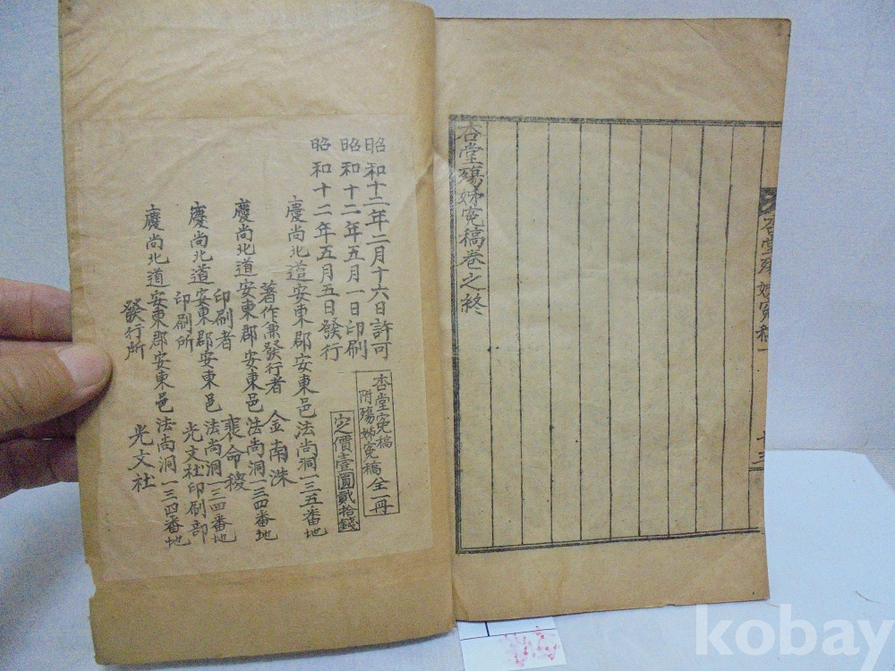 고당문집 ㅡ단책 ㅡ소화12년