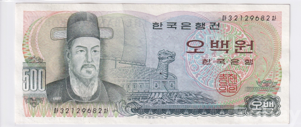 - 한국은행 1973년 이순신 오백원 3포인트 사용제 지폐