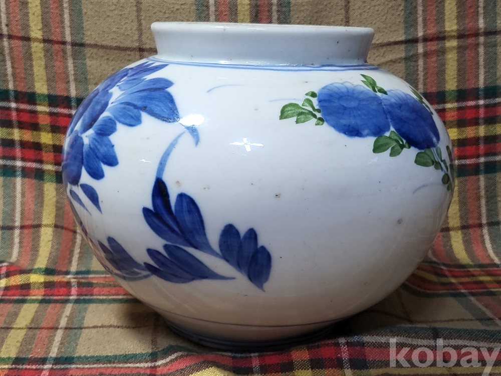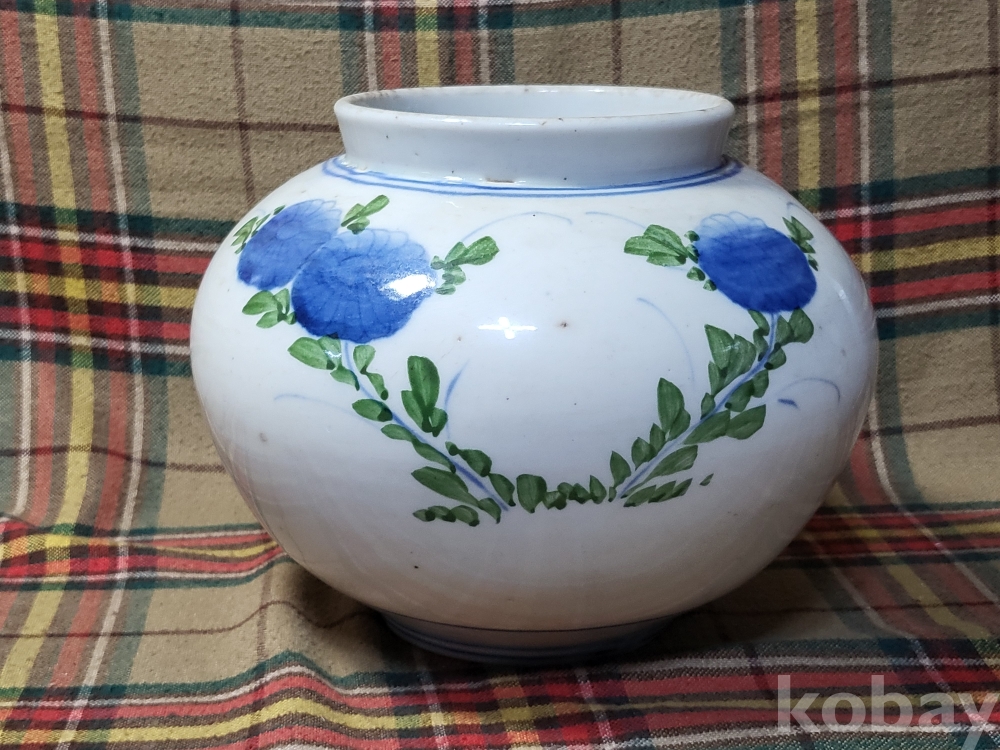 구한말~왜정초입에 이르는 오래된 연대의 청화백자 모란문항아리입니다.