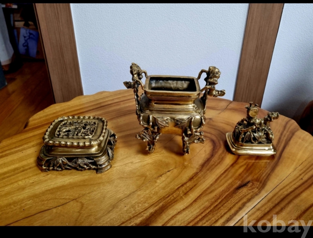 작품성이 뛰어난 3단 황동 향로 세트 ㆍ