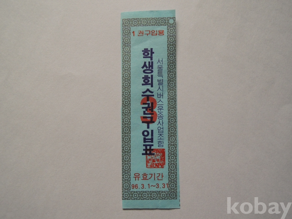 서울시내버스 학생회수권 구입표 (96.3.1~31)