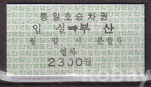 - 미사용 통일호 승차권 " 입실 ▶ 부산 " 2300원