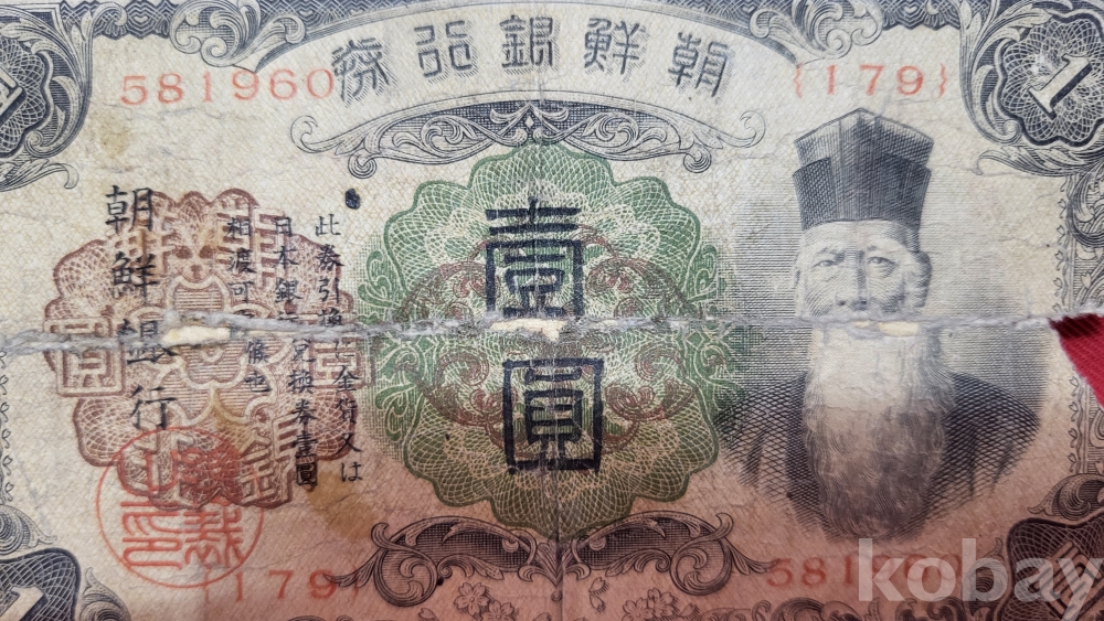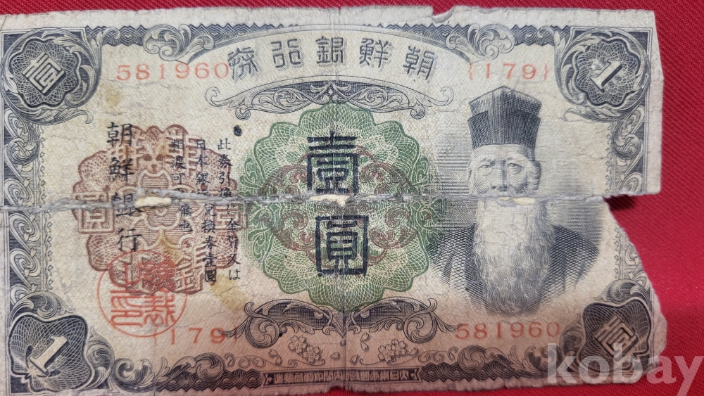 K ㅡ5책 10호 내4번 ////// 일제강점기 때 사용되었던 조선은행의 일원 지폐입니다,